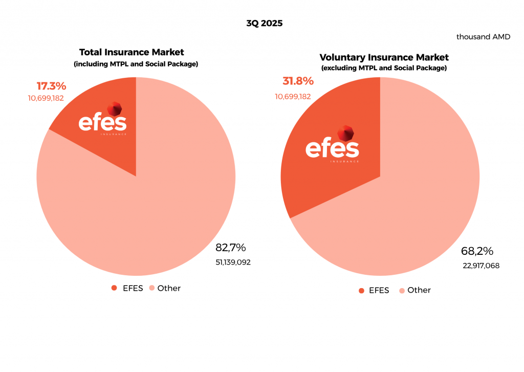 During the first nine months of 2025, EFES Insurance CJSC demonstrated stable and consistent growth, maintaining its leading positions in both the general and voluntary insurance markets. The company continued to develop its EFES Online platform and enhance its mobile application, making insurance services even more accessible and convenient.